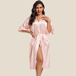 W0003 थोक सैटिन महिलाओं के लिए लंबे वस्त्र और आकार के सेक्सी स्लीवियर किमोनो